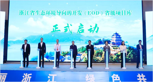 本次會議由浙江省生態(tài)環(huán)境廳主辦,溫州市人民政府、國開行浙江省分行、農發(fā)行浙江省分行協(xié)辦,溫州市生態(tài)環(huán)境局、溫州市洞頭區(qū)人民政府承辦。省級有關單位,國開行浙江省分行、農發(fā)行浙江省分行及其它相關金融機構相關負責人,以及各設區(qū)市生態(tài)環(huán)境部門、發(fā)展改革部門、EOD項目所在市縣政府代表等200余人參會。伴隨著會上浙江省EOD項目庫的啟動,開啟了EOD模式省域實踐的新篇章。