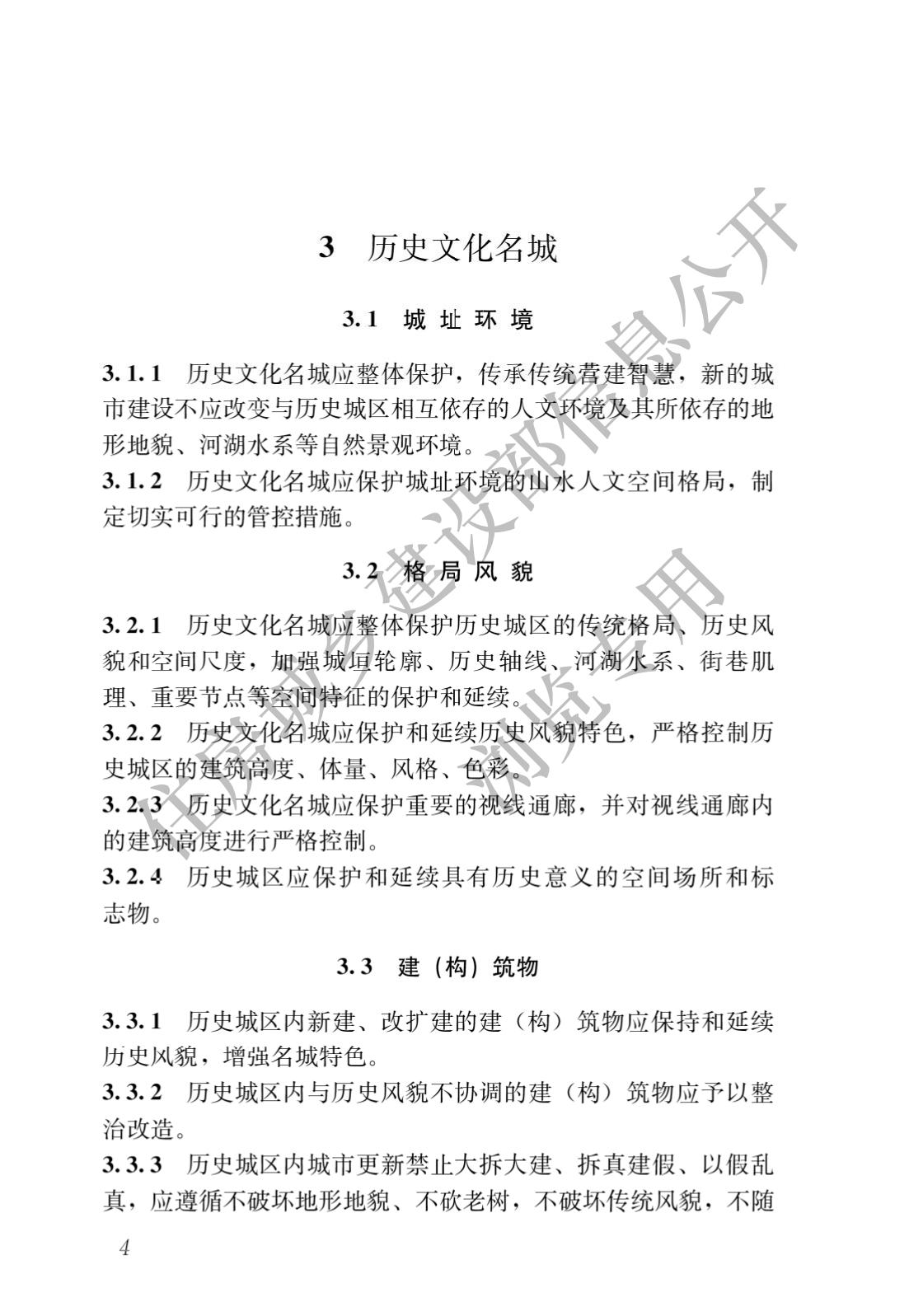 “3.3.3歷史城區(qū)內(nèi)城市更新禁止大拆大建、拆真建假、以假亂真,應(yīng)遵循不破壞地形地貌、不砍老樹,不破壞傳統(tǒng)風貌,不隨意改變或侵占河湖水系,不隨意更改老地名,不隨意拆除具有保護價值的老建筑、古民居的原則?!?/span>