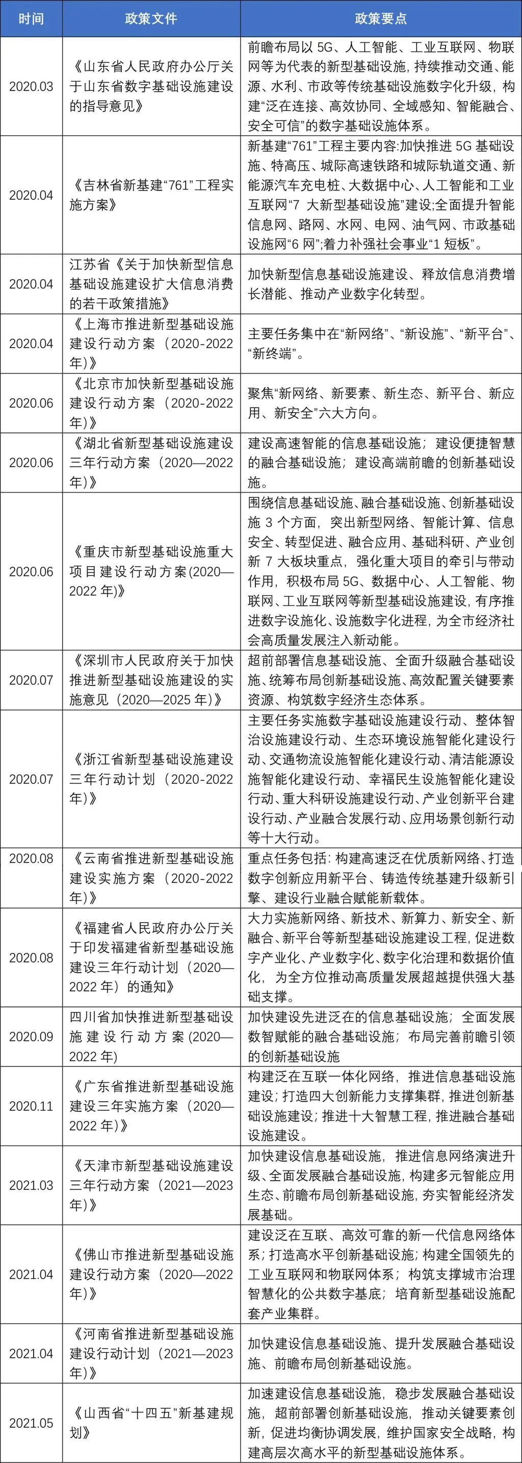 表3:部分地區(qū)新基建相關政策整理