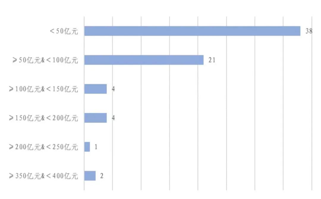 通過對兩批94個EOD試點(diǎn)項目公開資料的查閱,目前已知投資額度的項目有70個,總投資額為4420.17億元。投資額在50億元以下和50億元以上,100億元以下的項目數(shù)量分布較多,共計59個,占已調(diào)查項目的85.13%,其中,“韶關(guān)市曲江區(qū)生態(tài)環(huán)境導(dǎo)向的煤矸石綜合利用項目”投資額最小,為3億元;而投資額在200億元以上的項目僅有3個,分別是:“重慶市經(jīng)濟(jì)開發(fā)區(qū)生態(tài)環(huán)境導(dǎo)向的開發(fā)項目”(390億元)、“涪江遂寧主城區(qū)段環(huán)境綜合整治與城鄉(xiāng)一體化融合開發(fā)項目”(368億元)和“莆田市木蘭溪綬溪片區(qū)生態(tài)環(huán)境導(dǎo)向的開發(fā)項目”(210億元)。