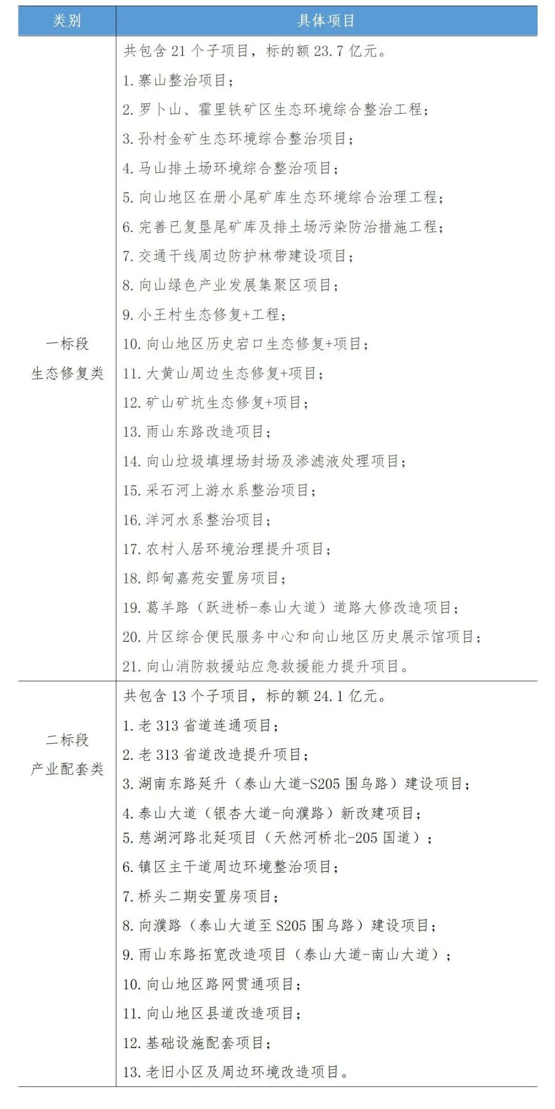 馬鞍山市向山地區(qū)生態(tài)環(huán)境導(dǎo)向的開發(fā)項目由馬鞍山市人民政府授權(quán)馬鞍山市雨山區(qū)人民政府為本項目實(shí)施機(jī)構(gòu),項目采取兩階段招標(biāo)方式操作,項目第一階段由雨山區(qū)人民政府通過競爭性程序選擇馬鞍山市兩山綠色生態(tài)環(huán)境建設(shè)有限公司作為本項目的特許經(jīng)營者,負(fù)責(zé)向山EOD項目的投融資、建設(shè)和運(yùn)營。項目第二階段由特許經(jīng)營者作為招標(biāo)人以EPC+產(chǎn)業(yè)導(dǎo)入方式確定項目的總承包單位。其中,一標(biāo)段中標(biāo)人為:中化學(xué)建設(shè)投資集團(tuán)有限公司聯(lián)合體;二標(biāo)段中標(biāo)人為:中鐵市政環(huán)境建設(shè)有限公司聯(lián)合體。