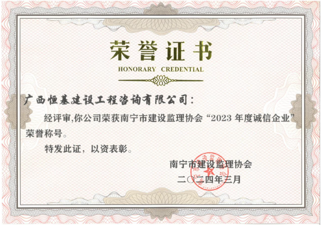 南寧市建設監(jiān)理協(xié)會“2023年度誠信企業(yè)”