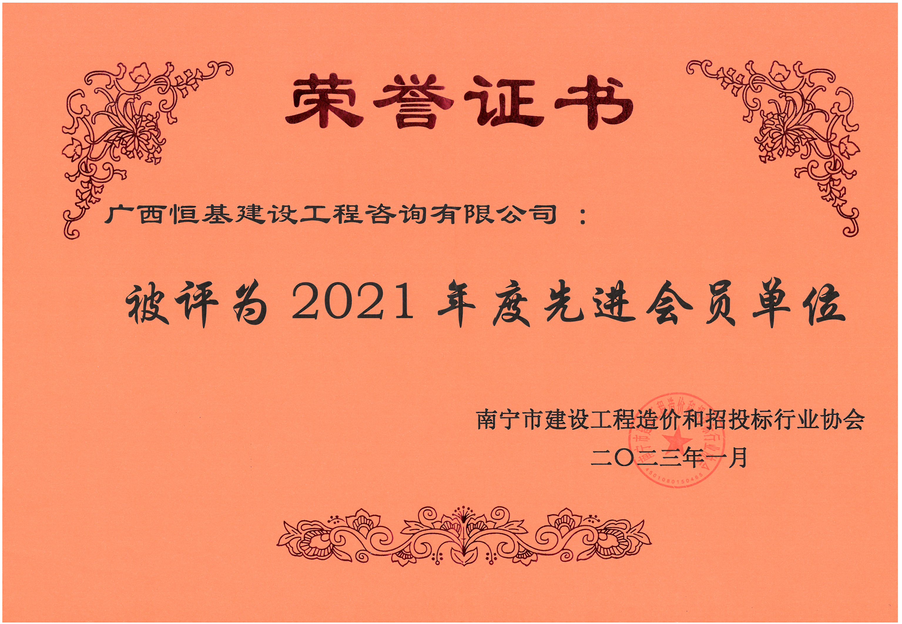 2021年度南寧市建設(shè)工程造價和招投標(biāo)行業(yè)協(xié)會先進(jìn)會員單位