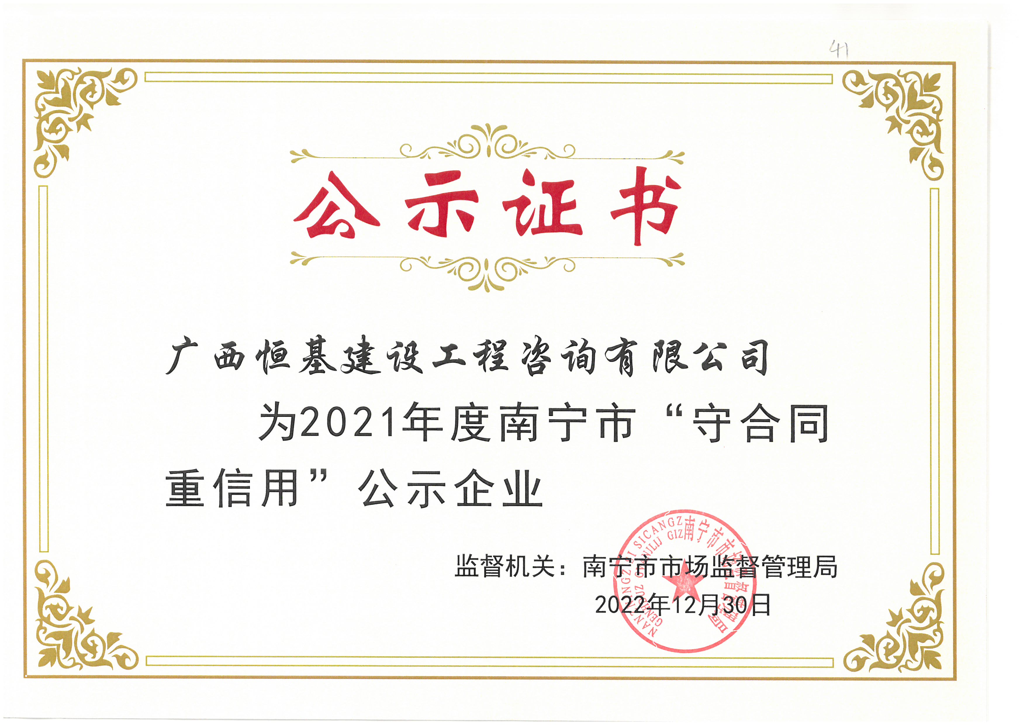 2022年度廣西壯族自治區(qū)“守合同重信用”公示企業(yè)