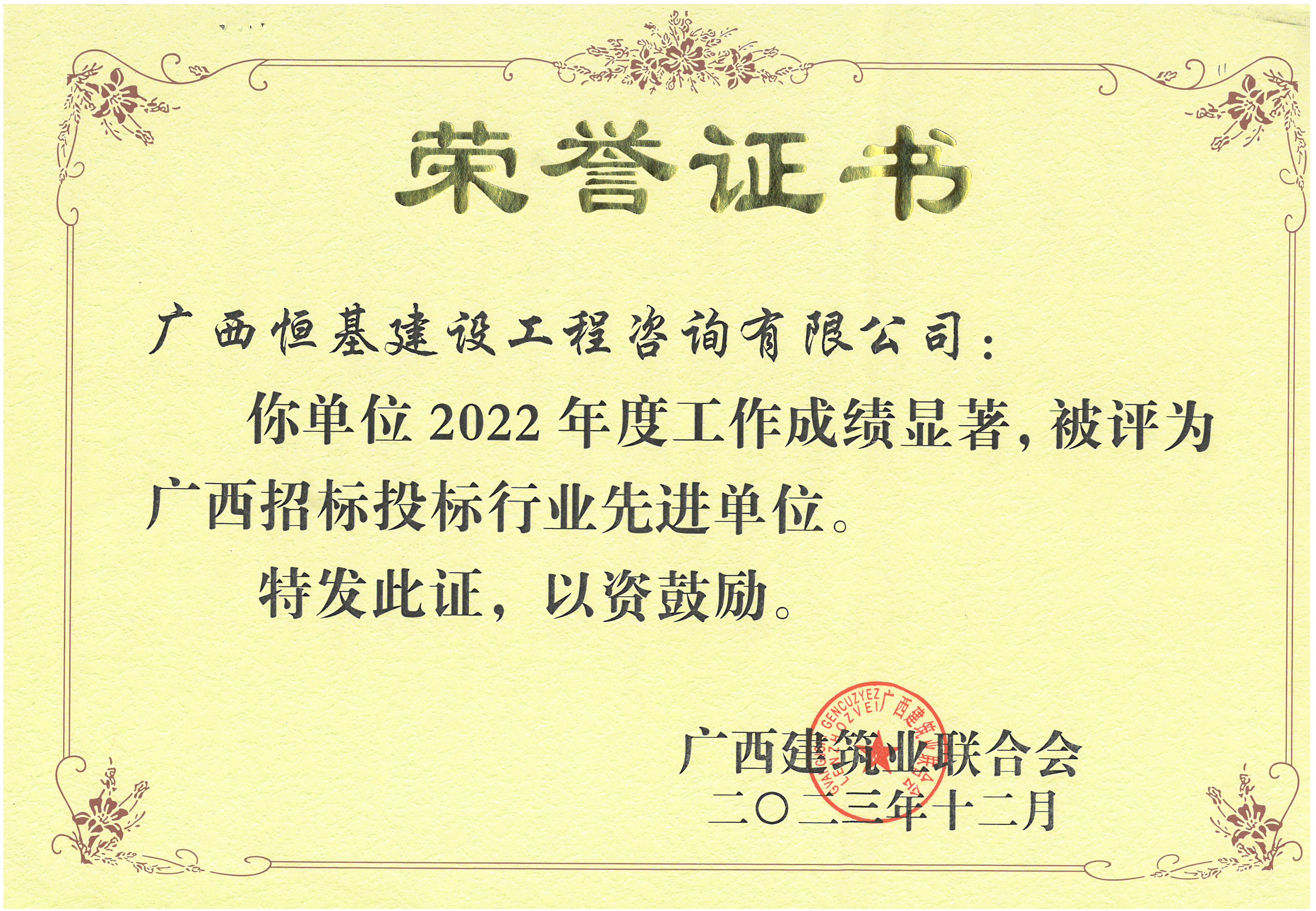 2022年度廣西招標(biāo)投標(biāo)行業(yè)先進(jìn)單位