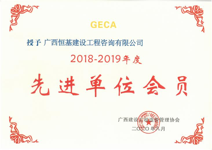 廣西建設(shè)工程造價管理協(xié)會2018-2019年度先進單位會員